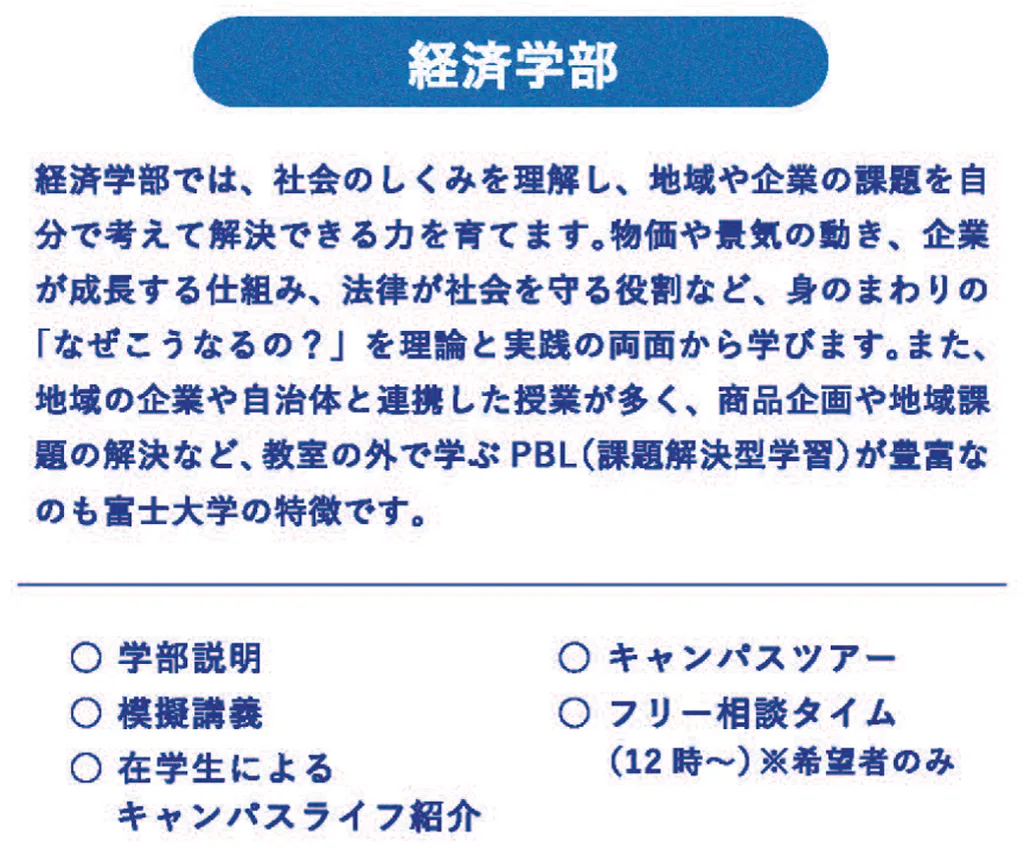 お申し込みの際は、希望する学部をお間違えのないようご確認ください。 経済学部オープンキャンパスのお申し込みはこちら スポーツ健康科学部オープンキャンパスのお申し込みはこちら SPECIAL MOVIE オープンキャンパスの様子がわかる特別映像